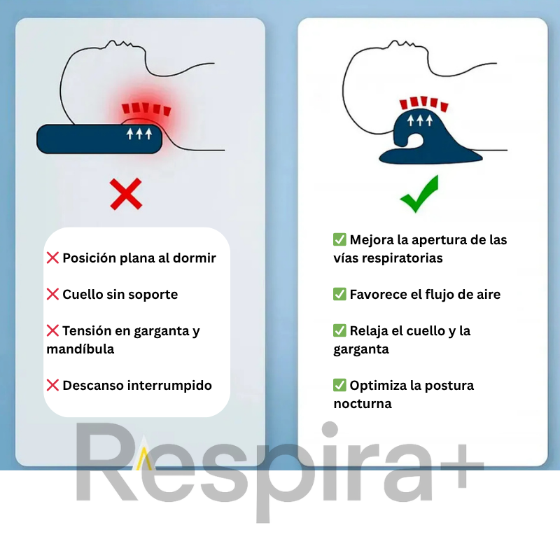 Respira+ Descanso Profundo está diseñado para mantener tu cuello alineado y favorecer una respiración más natural durante el sueño.